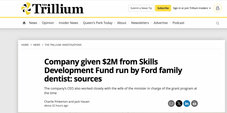 A company linked to Doug Ford’s family dentist has received about $2 million from Ontario’s controversial Skills Development Fund, one of the few dentistry‑focused firms to tap into this multi‑billion‑dollar pot of “job training” money. It is yet another reminder that in Ontario, the people who most need grants rarely get them, while those closest to power keep striking gold.